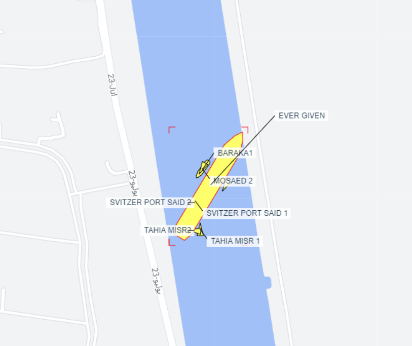 從船位圖來看,船卡的位置非?!熬珳?zhǔn)”和喜感,把整個(gè)蘇伊士運(yùn)河堵死,誰都別想過。