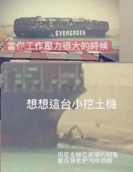 看來唯一能解決運(yùn)河堵塞這一問題的就是這臺(tái)挖掘機(jī)了!