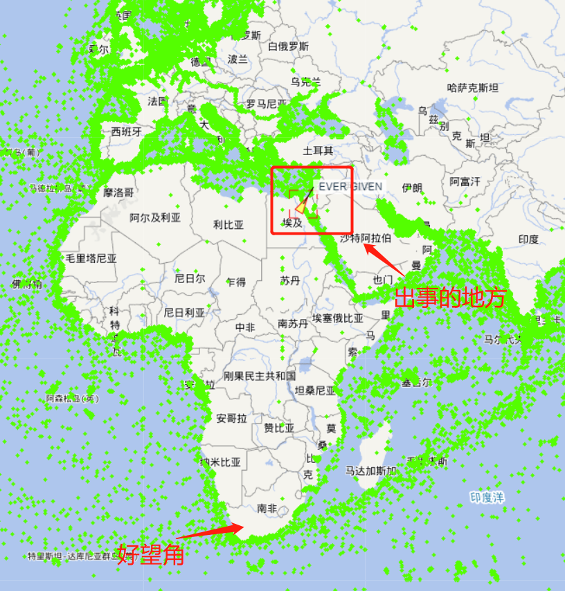 很多貨船耽誤了運(yùn)輸時(shí)間,如果想要避開,就要繞道好望角..